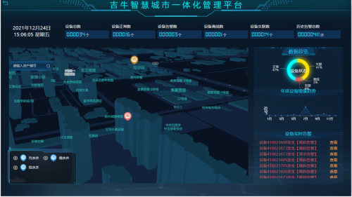 吉牛科技智能井盖系统主要功能模块包括井盖属性管理、地图显示、非法开启报警管理、沉降检测、用户登录和统计报表管理等。智能井盖系统的核心是智能终端--智能传感器,主要负责检测井盖的非法开启、沉降状态、道路交通流、并内温湿度和气体等。