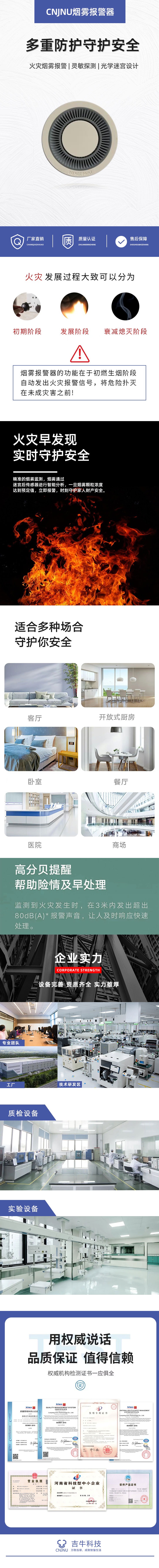 CNJNU烟雾报警器 多重防护守护安全 火灾烟雾报警 | 灵敏探测 | 光学迷宫设计 烟雾报警器的功能再于初燃生烟阶段自动发出火灾报警信号,将危险扑灭再未成灾害之前!精准的烟雾监测,烟雾通过迷宫后传感器进行智能分析,一旦烟雾颗粒浓度达到预定值,立即报警,时刻守护家人财产安全。